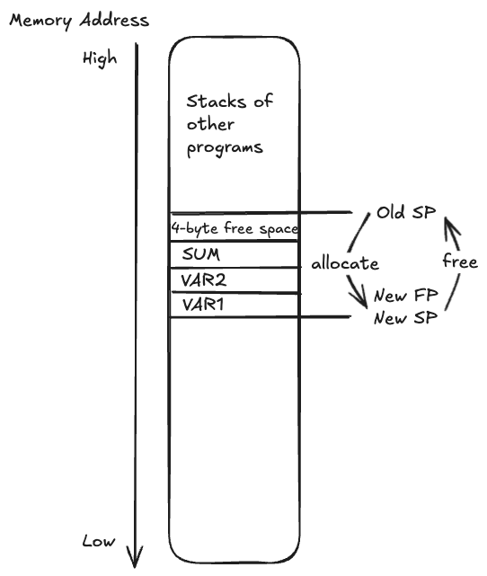 Wastes memory if variables are not using all 16-byte, can be addressed by using Frame Pointer (FP)